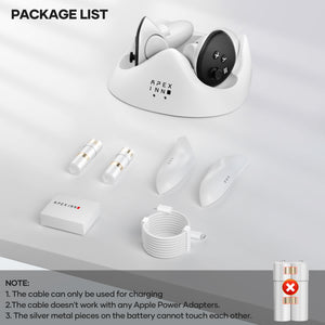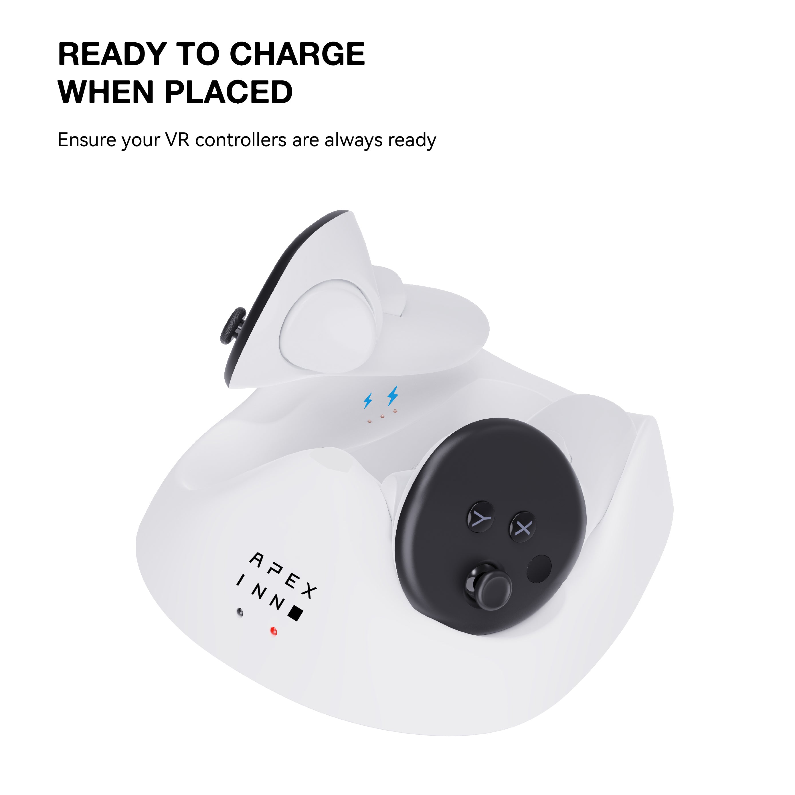 Easy Charging: Install the APEXINNO battery and cover on the Quest 3S controllers, then place on the dock to charge. (Note: not compatible with controller grip covers)