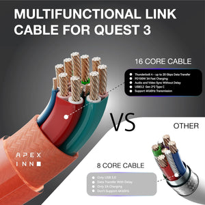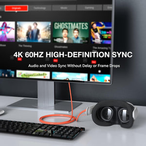 Stable Link Cable for VR Gaming: Made with 16 copper cores and 96 copper wires, ensuring a stable connection for Quest 3S/Quest 3/Quest 2 with 4K60Hz high-definition audio and video sync without delay or frame drops