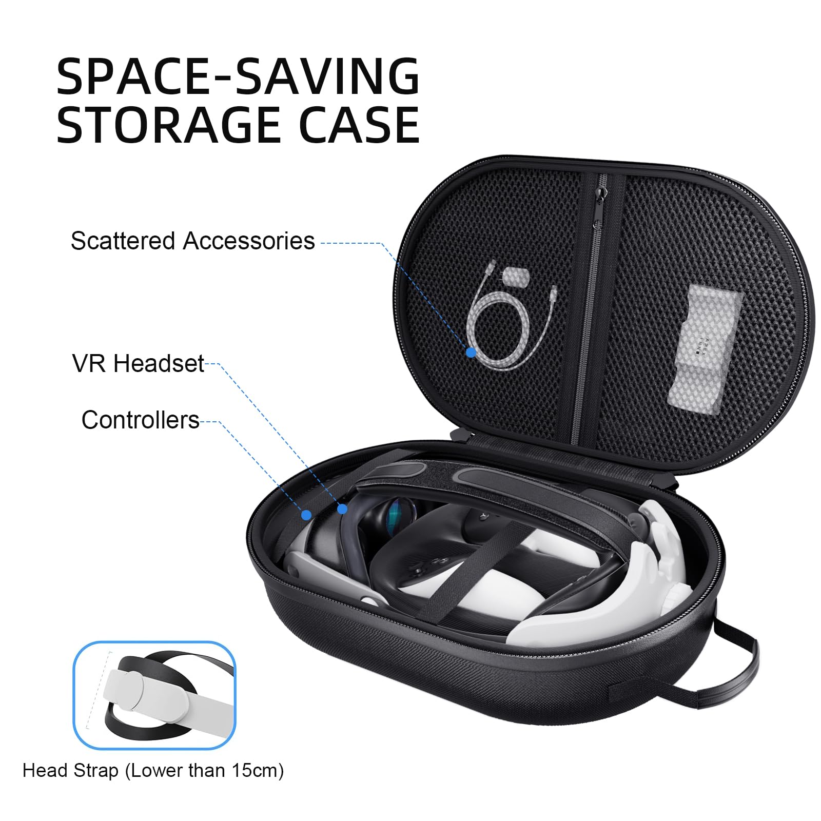 Designed for Quest 3S/Quest 3/Vision Pro: Holds headsets, straps (under 15cm), controllers, and accessories, ideal for storage and travel
